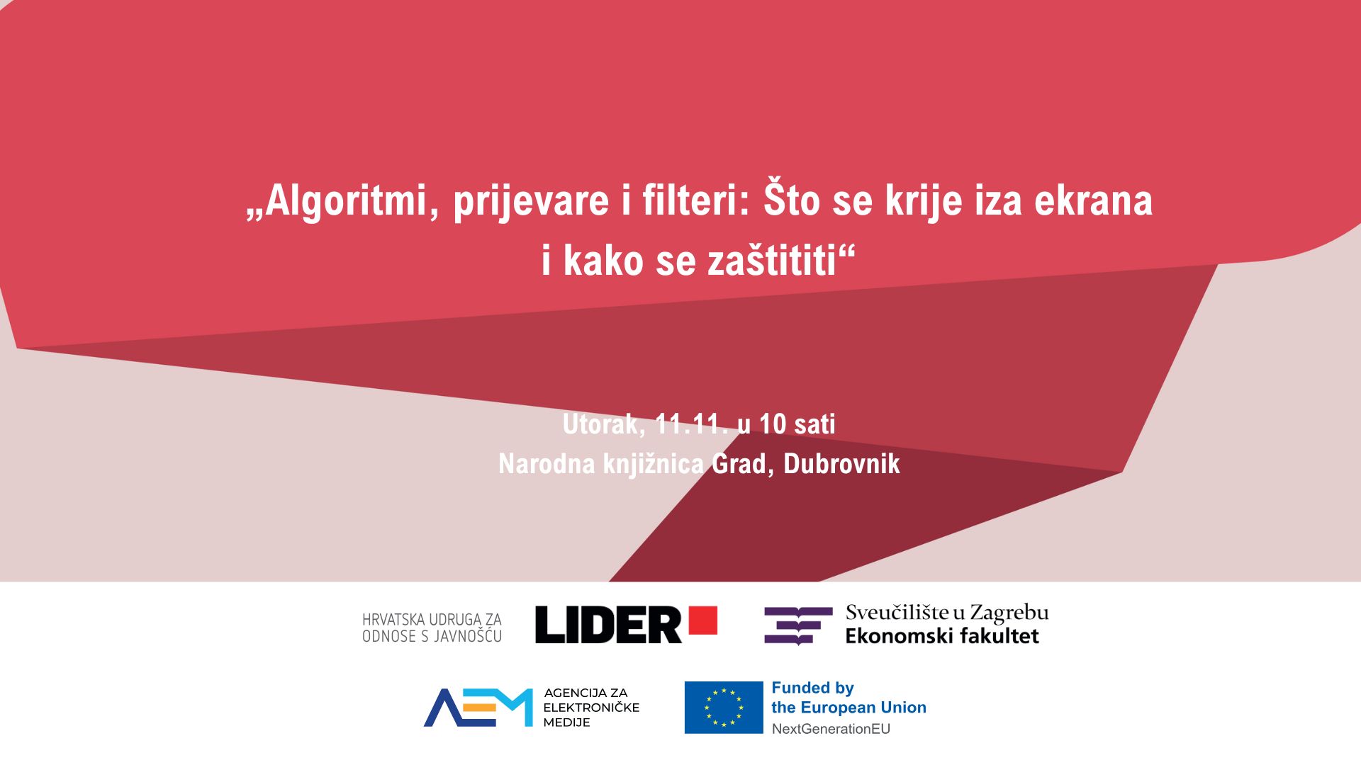 Poziv na okrugli stol “Algoritmi, prijevare i filteri: Što se krije iza ekrana i kako se zaštititi”